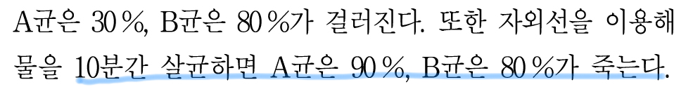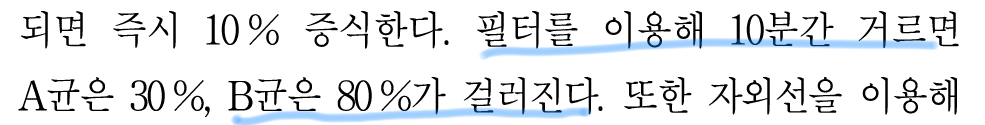 그럼 결국 모든 공정을 거친 물에 A균과 B균이 각각 5마리, 20마리 존재하는 것이냐, 하면 그건 또 아니다.