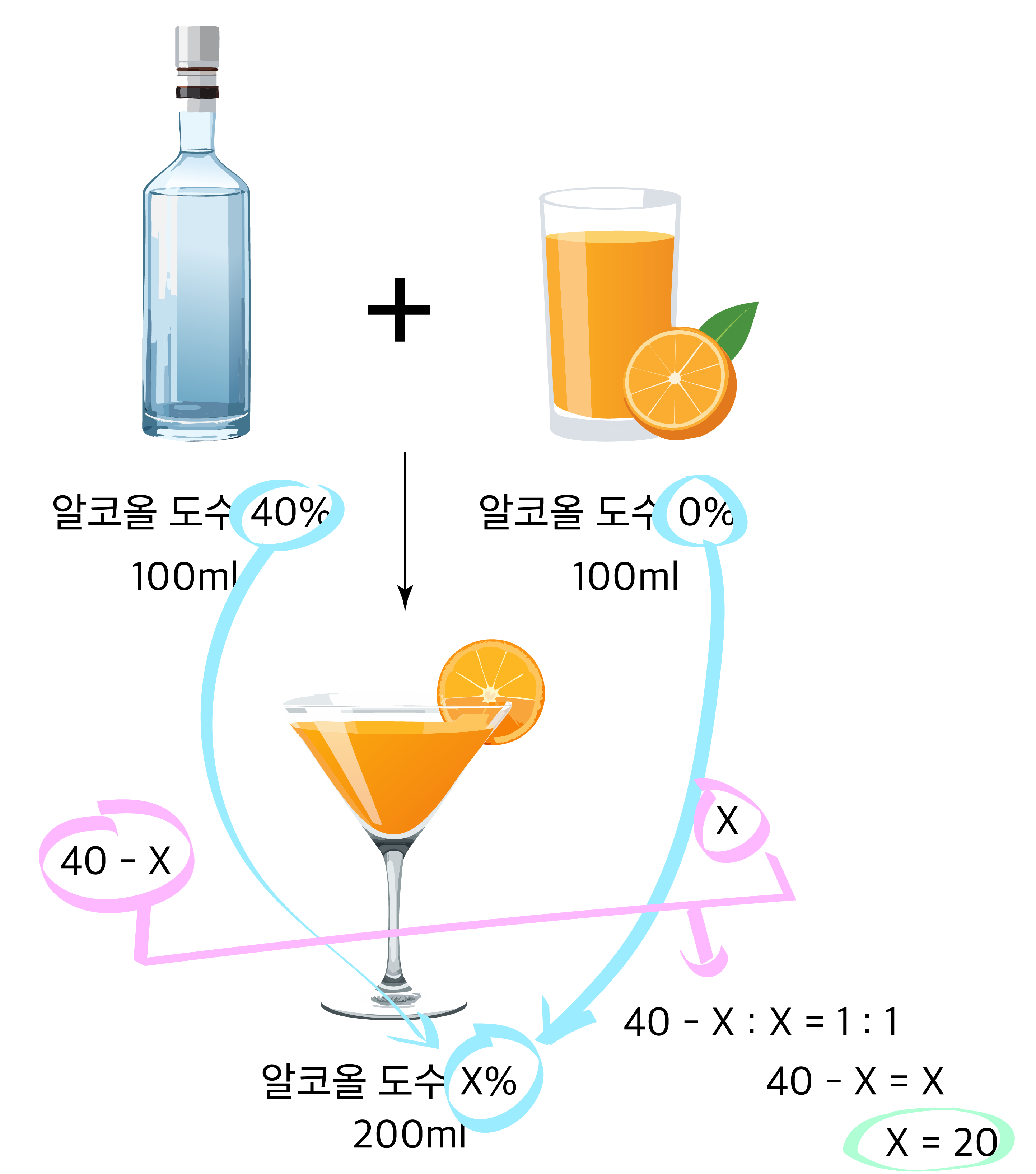 그럼 보드카 200ml, 오렌지 주스 100ml일 때에는?