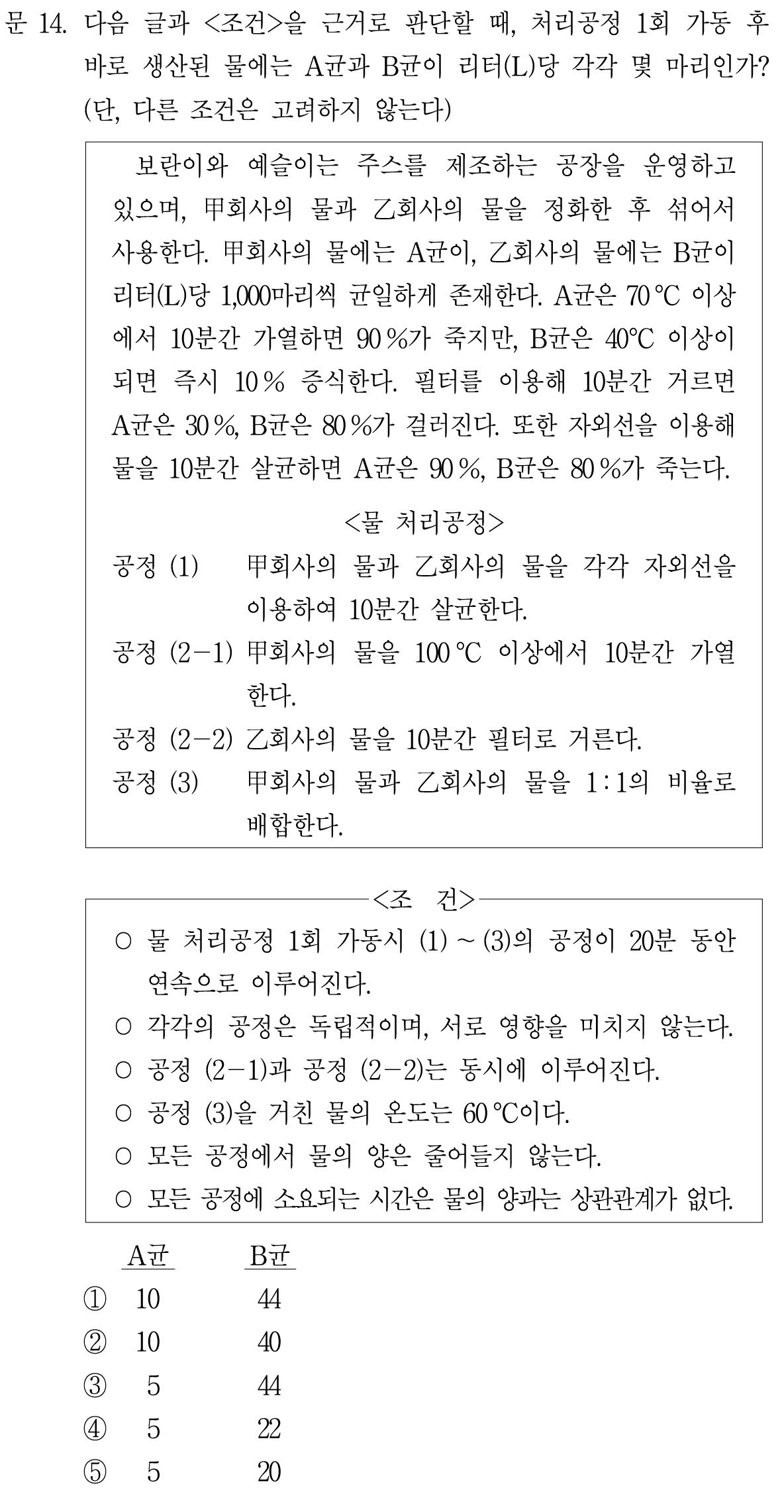 | 2014년 5급 공채 PSAT 상황판단(A책형) 17번 오답 풀이 (0) | 2025.03.23 |