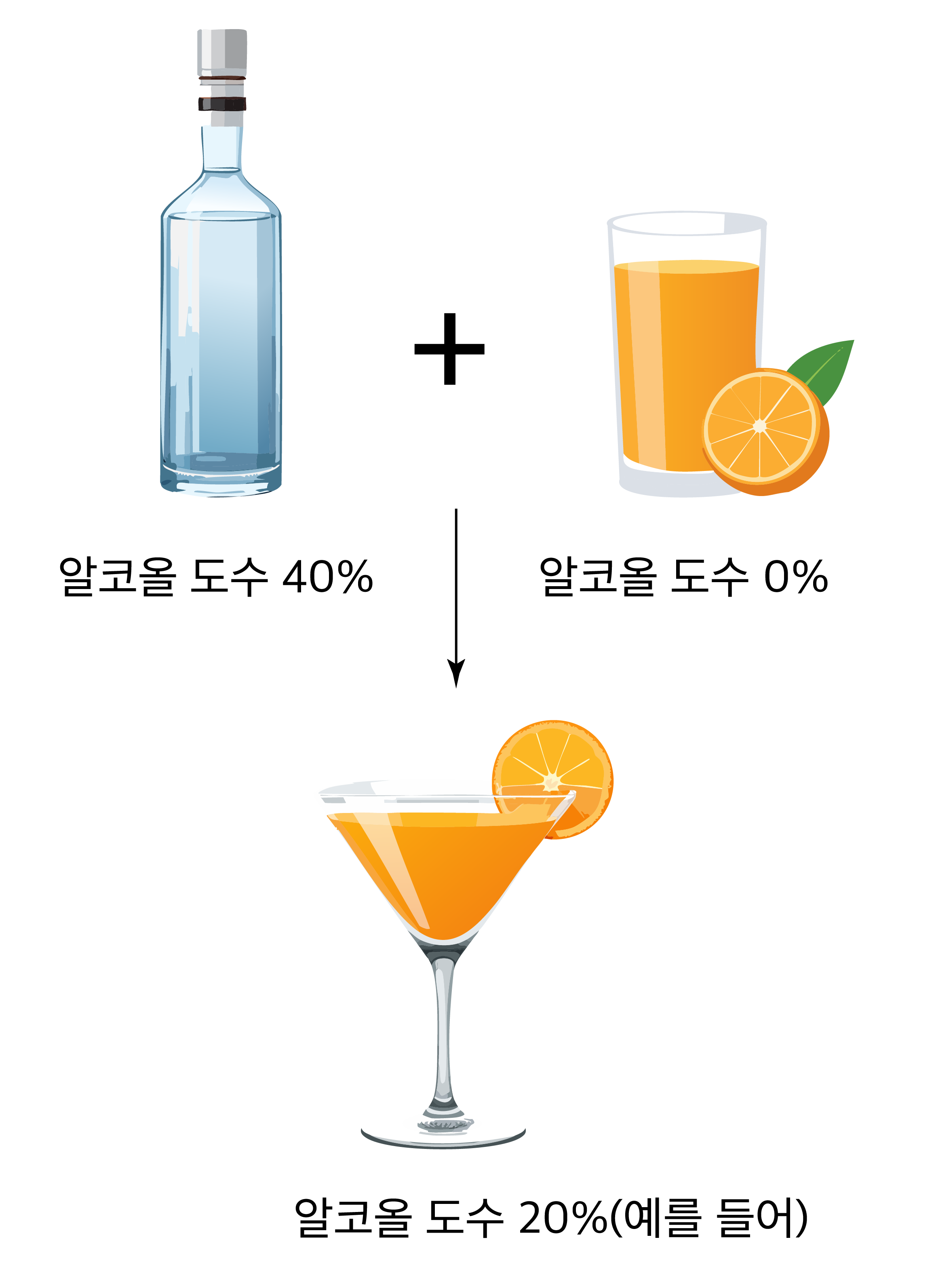 알코올 도수 0%인 오렌지 주스와 섞을 때,