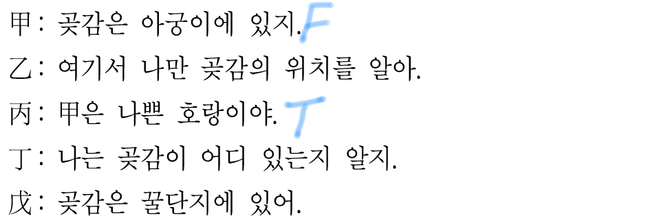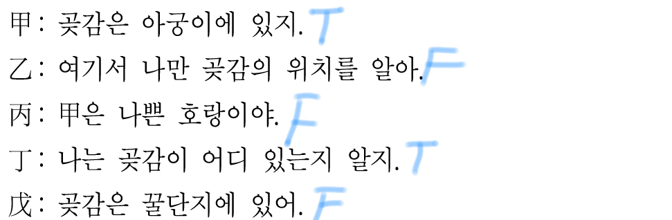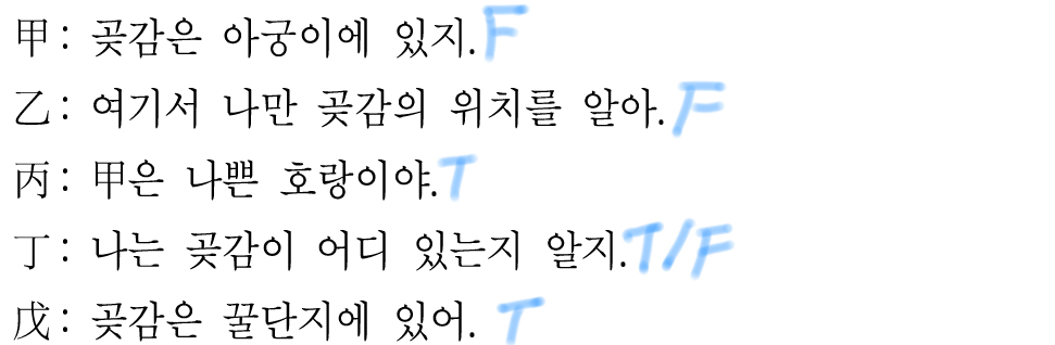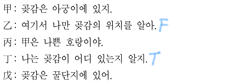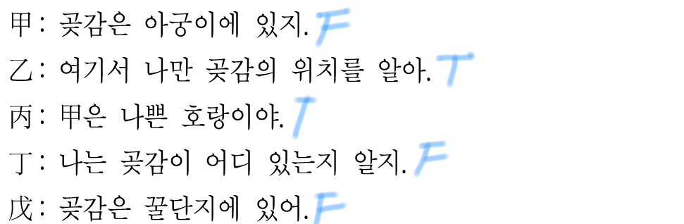 갑이 맞았다면 을, 병, 무 모두 틀린 것이 된다.