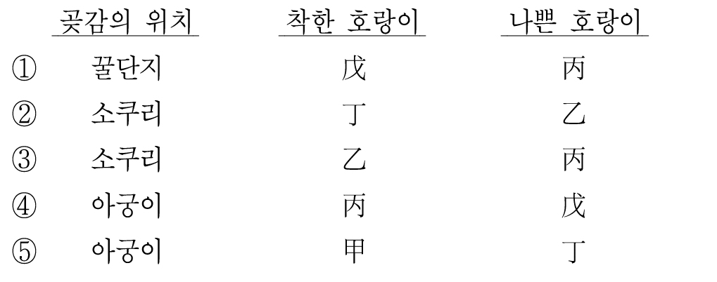 갑을 나쁜 호랑이라고 한 병은 착한 호랑이가 되어야 한다.
