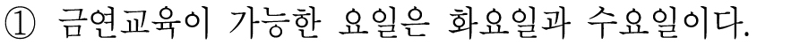 금연교육은 화요일에 실시해야 한다는 것을 알 수 있다.