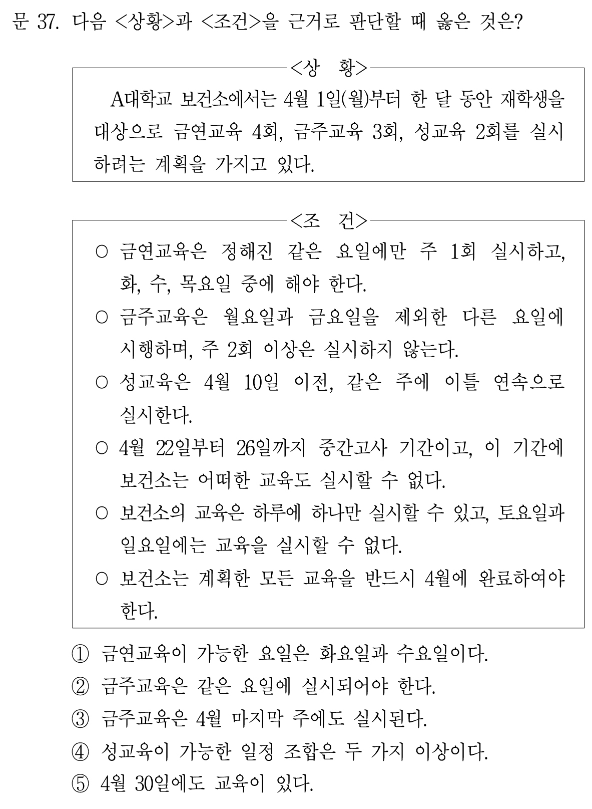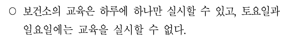 금연교육은 화요일에만 할 수 있다.