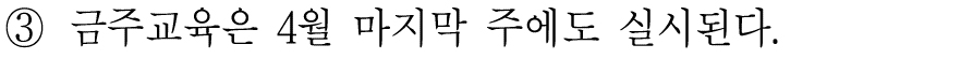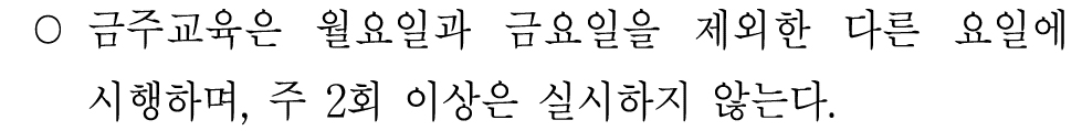 금주교육이 첫주차에는 수요일에 실시되어야 하기는 하지만