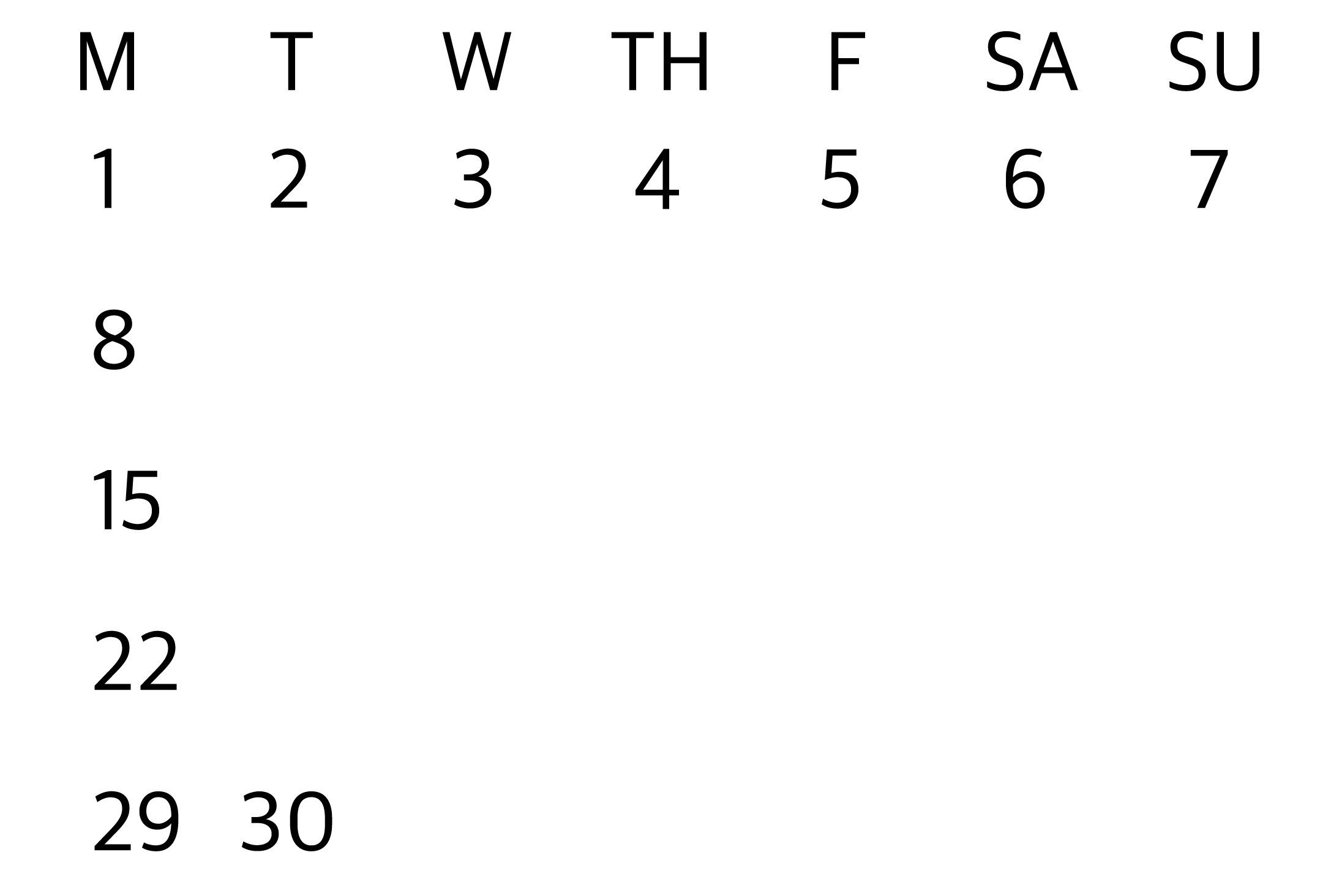 이렇게 보니 4월에 5개의 월요일과 화요일, 그리고 4개의 나머지 요일들이 있다는 것을 알 수 있다.