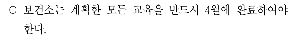 4월 마지막 주에 실시되는 교육은 금연교육밖에 없다.