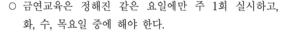 금연교육과는 달리 한 요일에만 꼭 해야 할 필요는 없다.