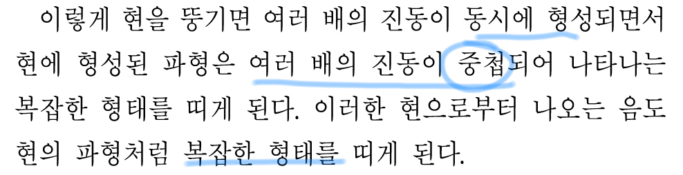 아무튼, 이렇게 현의 중앙을 뚱기면 여러 진동이 중첩된다고 한다.