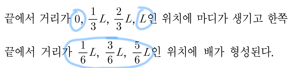 (1/6)L (3/6)L (5/6)L에 3개의 배가 형성되고