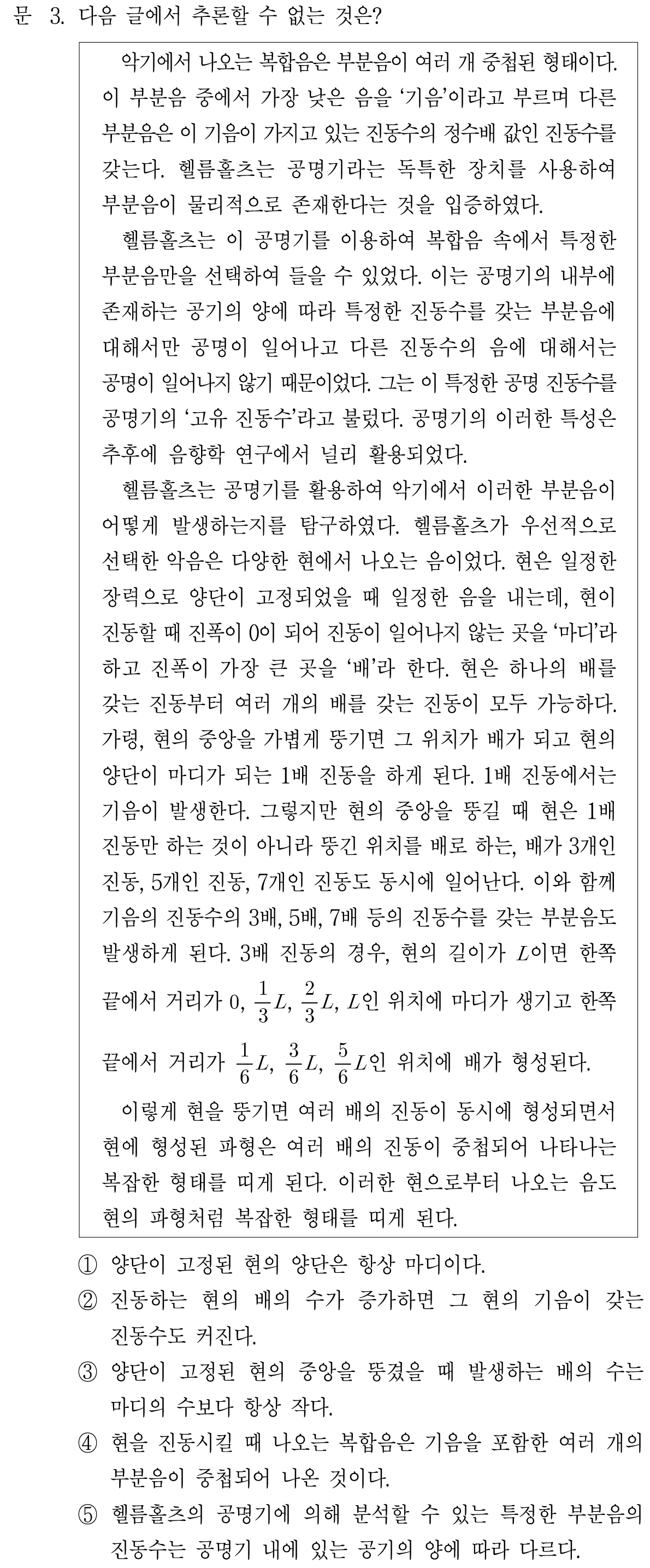 공명기 내부에 존재하는 공기의 양에 따라 공명을 하게 되는 부분음의 특정 진동수가 고유 진동수이다.