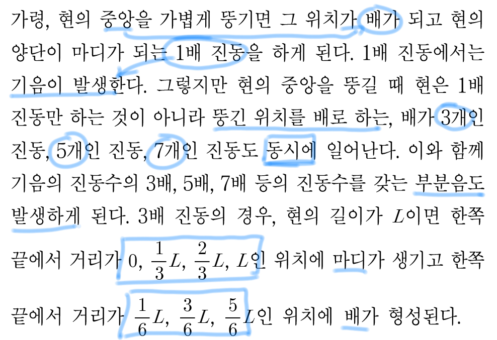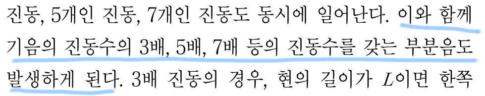 배가 (2n-1)개인 진동에서는 (2n-1)배의 진동수를 갖는 부분음이 발생한다고 한다.
