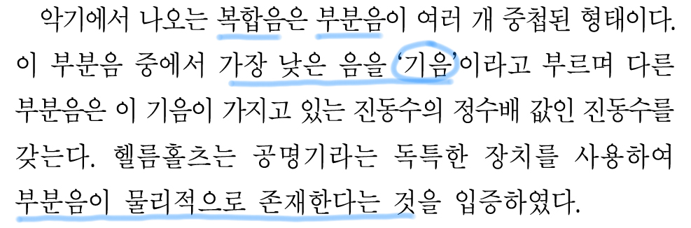 그리고 공명기를 통해 부분음이 존재함을 증명했다고 한다.