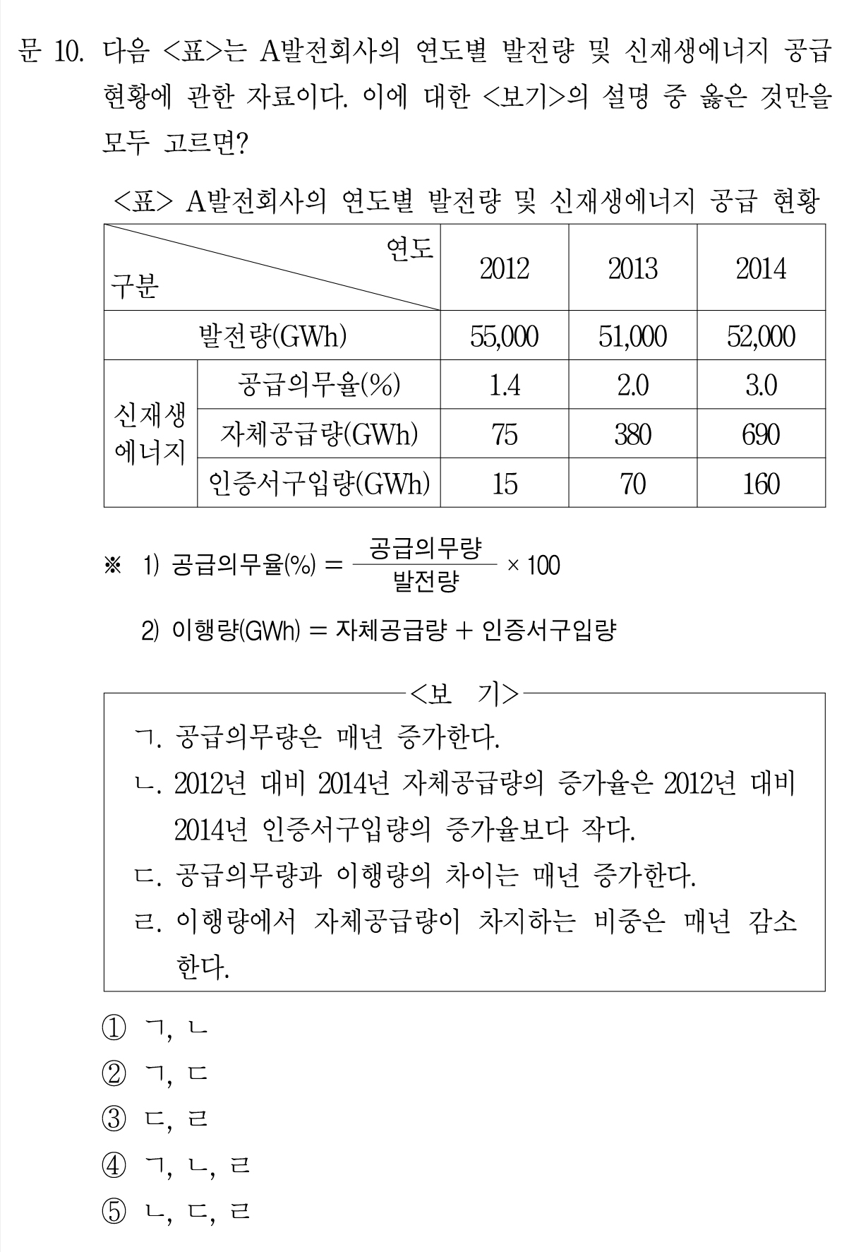 ㄹ. 이행량에서 자체공급량이 차지하는 비중은 매년 감소한다.
