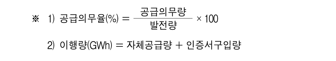 표를 보면 공급의무율과 발전량은 나와 있다.