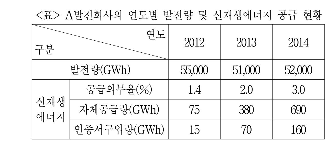 2013년과 2014년 공급의무량을 구하는 건 그리 어려워 보이지 않는다.