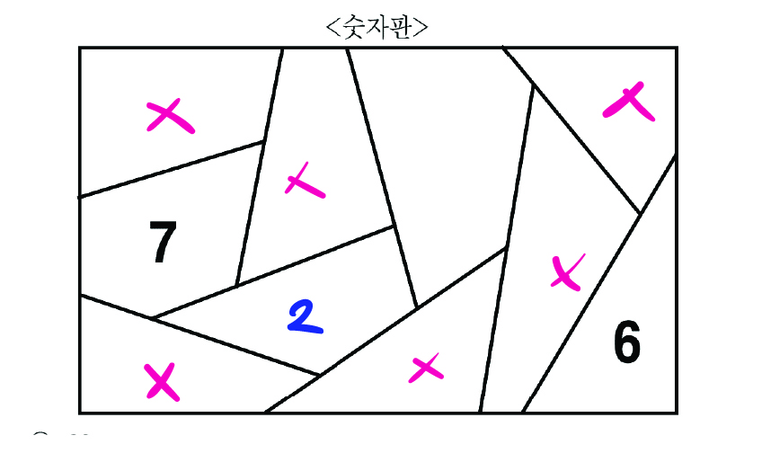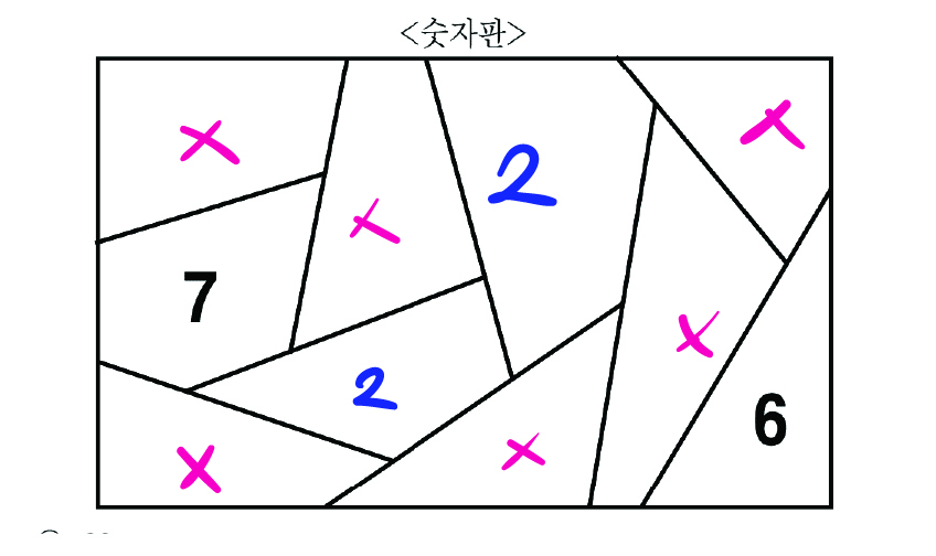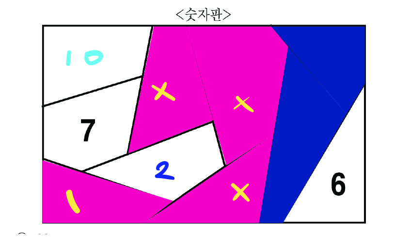 2는 모든 홀수와 인접하므로 분홍으로 칠해진 곳은 홀수만,