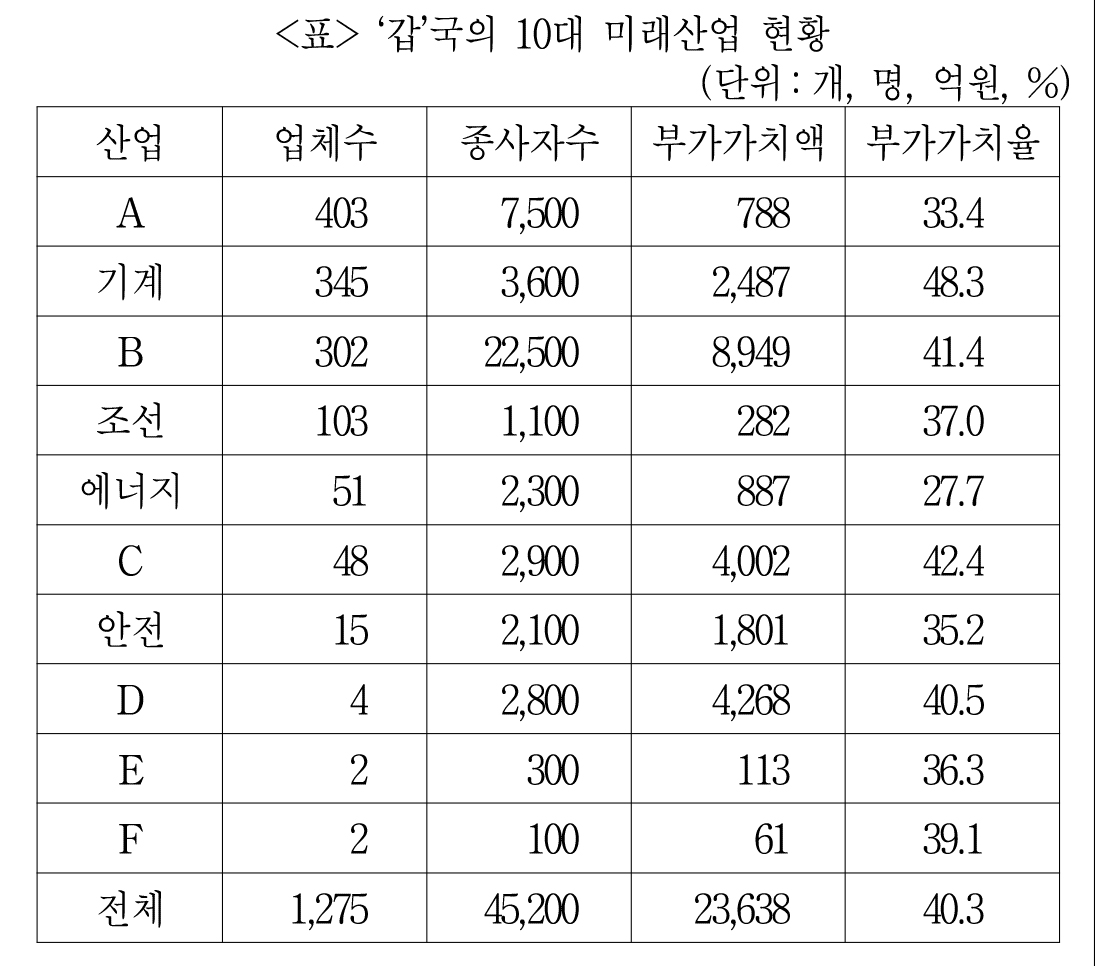 일단 부가가치액이 가장 낮은 것을 보자.