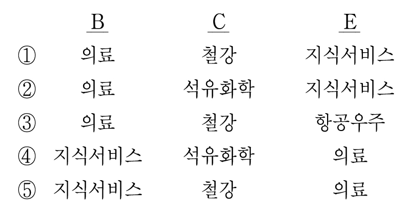 E가 의료가 될 수도, B가 의료가 될 수도 있다.