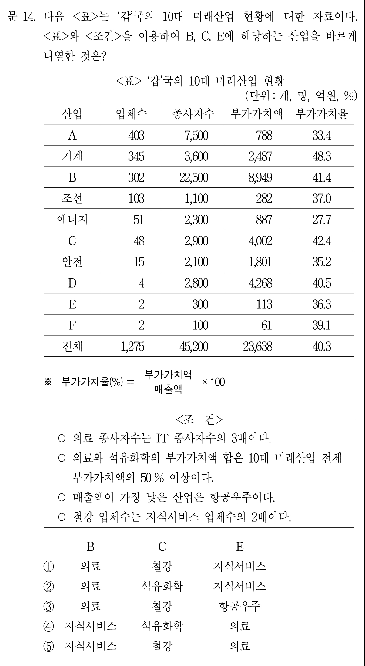 그러면 전체 부가가치액 23,638의 절반 이상을 차지하려면 당연히