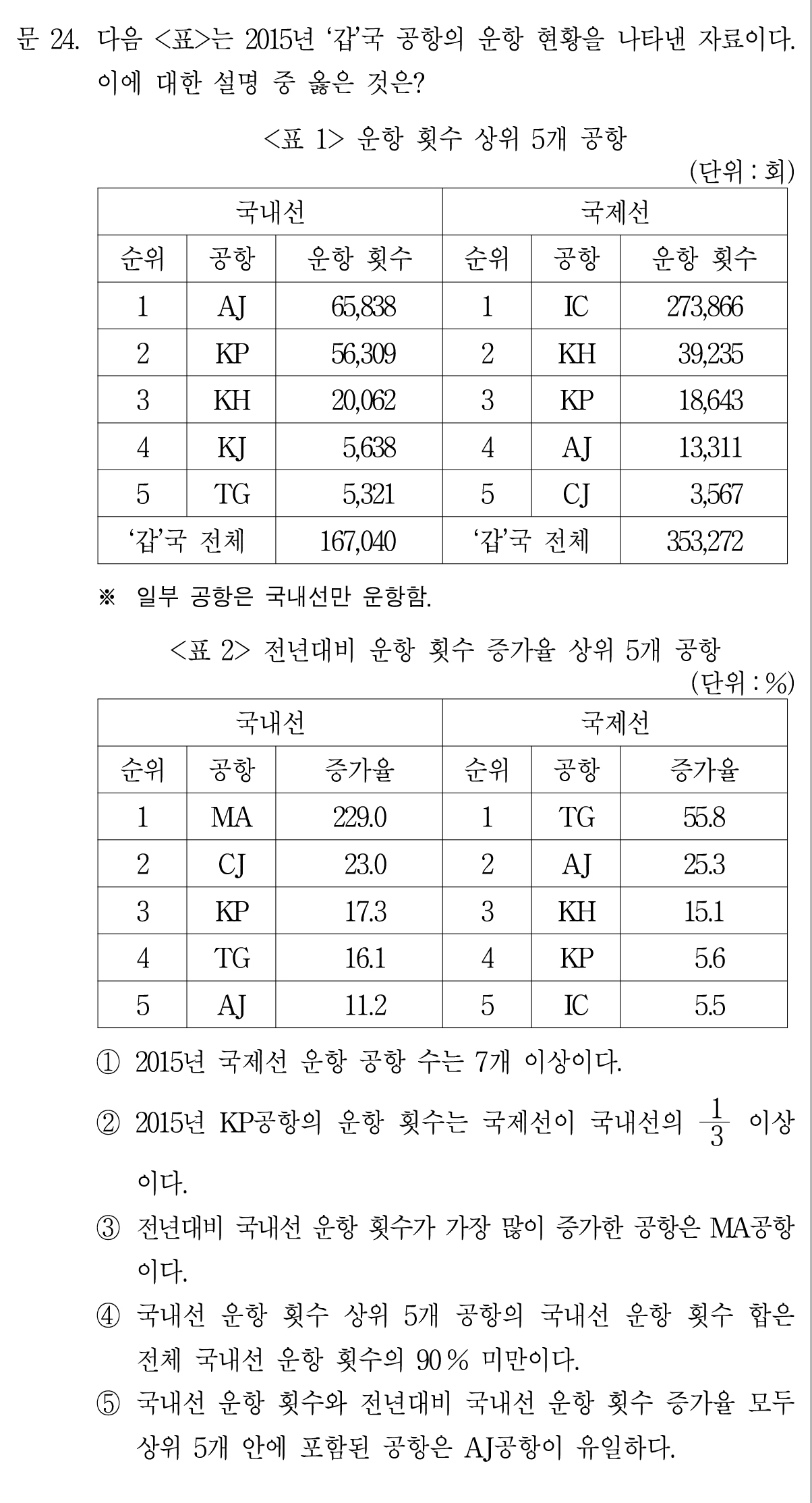 <표1>을 보면 MA 공항은 운항 횟수 상위 5위에도 안 든다.