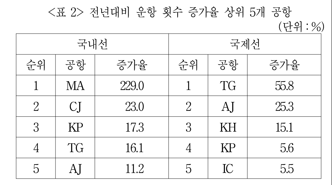 <표2>를 보면 MA 공항의 운항 횟수 증가율이 229%나 되는 것을 알 수 있다.