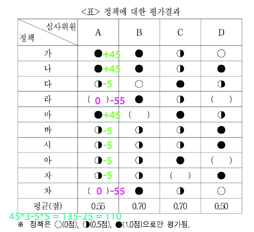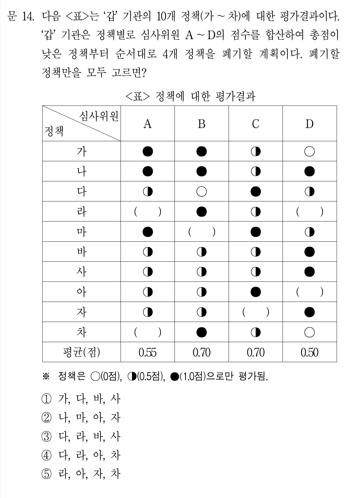 딱 봤을 때, 0점이 2개인 '라'와 '차'가 가장 낮아 보인다.