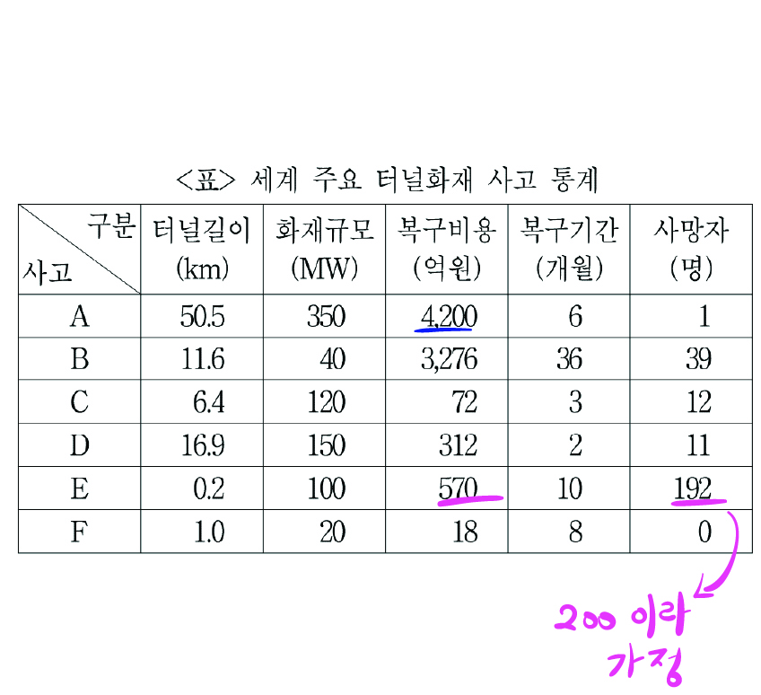 5번. 사망자가 30명 이상인 사고를 제외하면 화재규모가 클수록 복구비용이 크다.