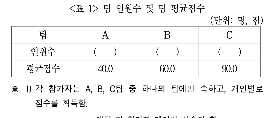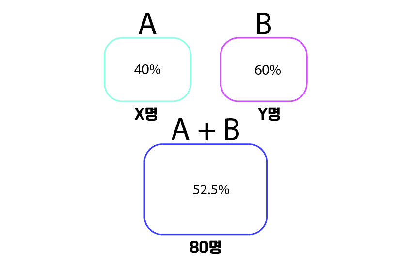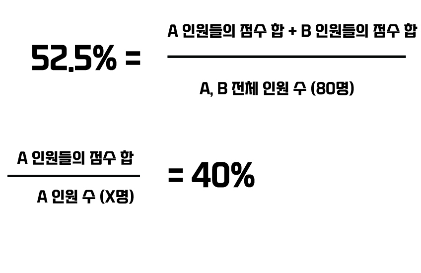 근데 A인원들 점수 합은 A 평균이 40%라는 것으로부터 구할 수 있는데,