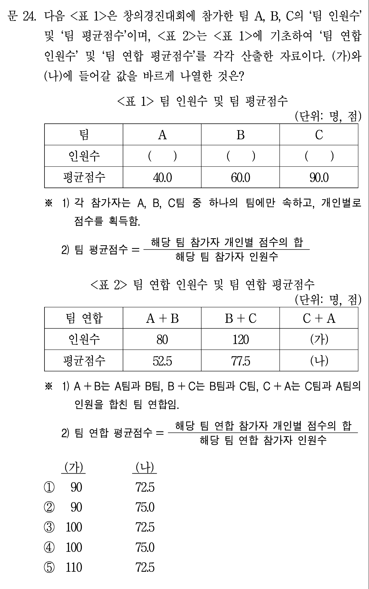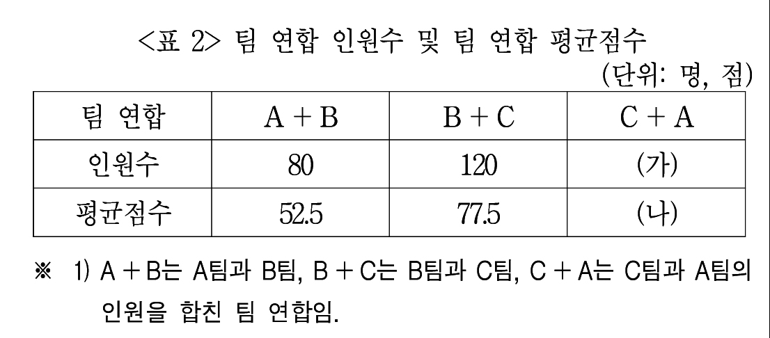 A와 B의 평균 점수는 알지만 A와 B에 몇 명이 있는지는 모른다.