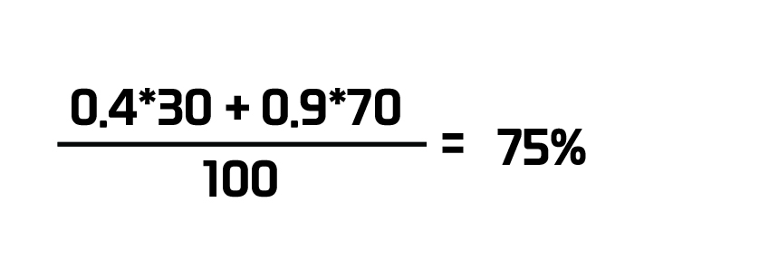 A인원들 점수 합과 B 인원들의 점수합을  A, B 전체 인원 수로 나눠줌으로써 구해진 것이다.