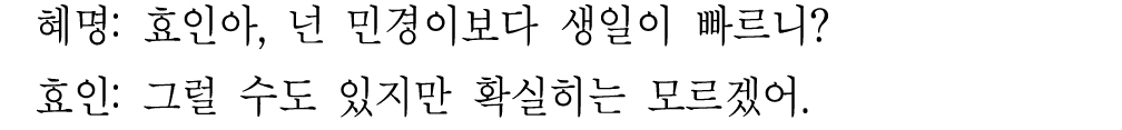 그렇다면 혜명이도 3월생이라는 것을 알 수 있다.