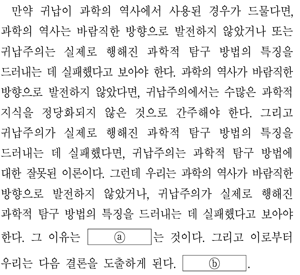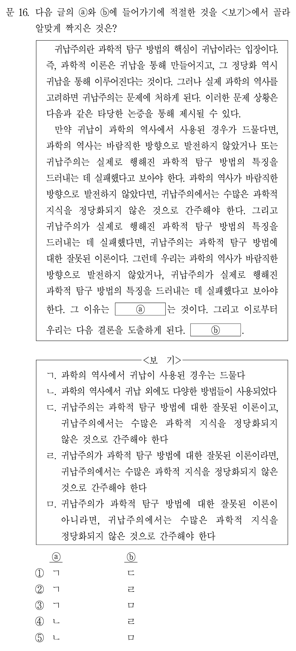 ㅁ. 귀납주의가 과학적 탐구 방법에 대한 잘못된 이론이 아니라면, 귀납주의에서는 수많은 과학적 지식을 정당화되지 않은 것으로 간주해야 한다.