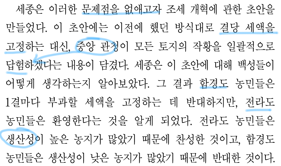 그래서 세종은 답험이 제대로 되지 않는 문제를 해결하기 위해서 중앙 관청이 직접 답험을 하는 식으로 개선하겠다고 했다.