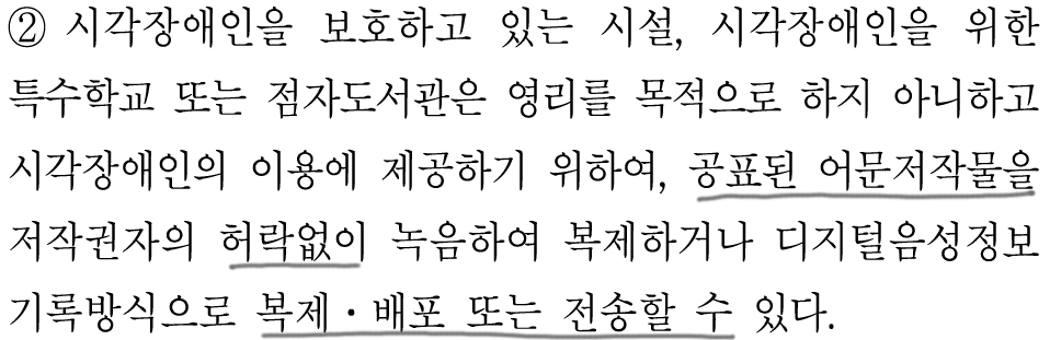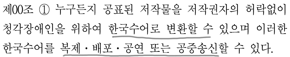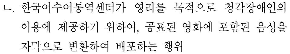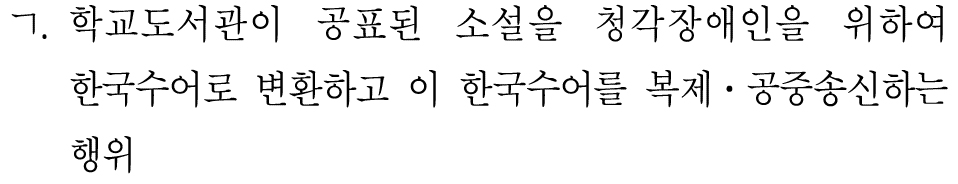 청각장애인을 위한 경우에는 변환 및 복제 · 공중송신도 가능하다.