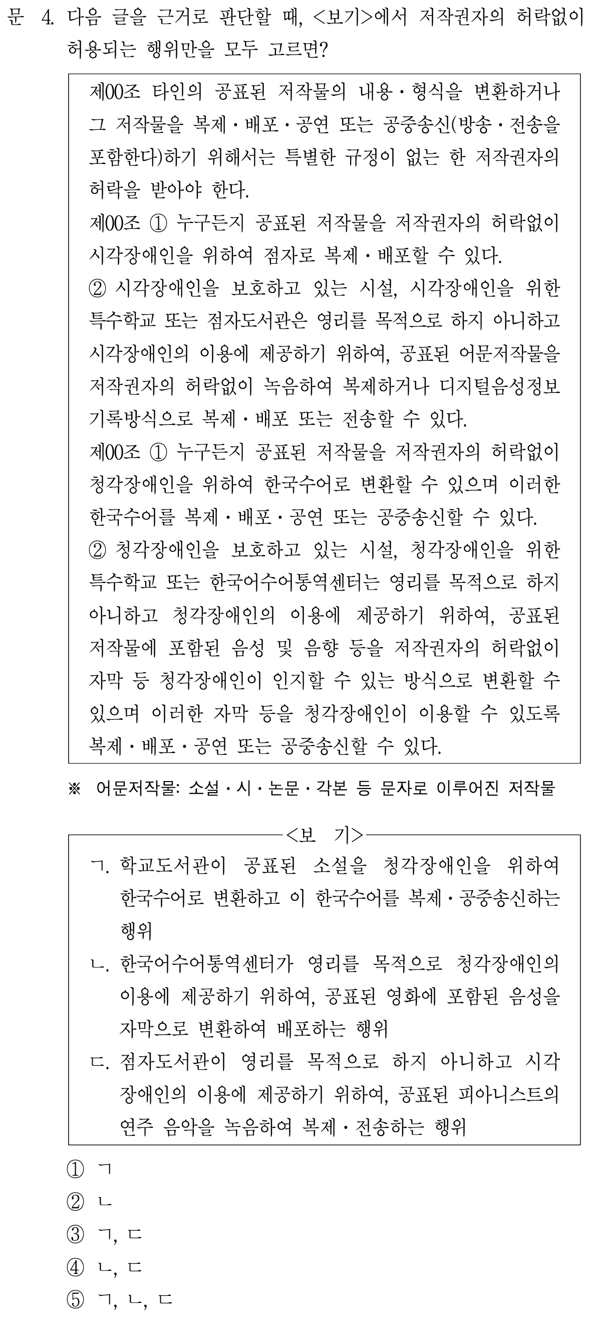 여기서 허락 없이 복제 · 배포 가능한 것은 '공표된 어문저작물'이다.