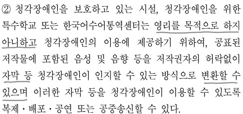 근데, '영리를 목적으로 하지 아니하고' 자막으로 변환할 수 있다는 데서,