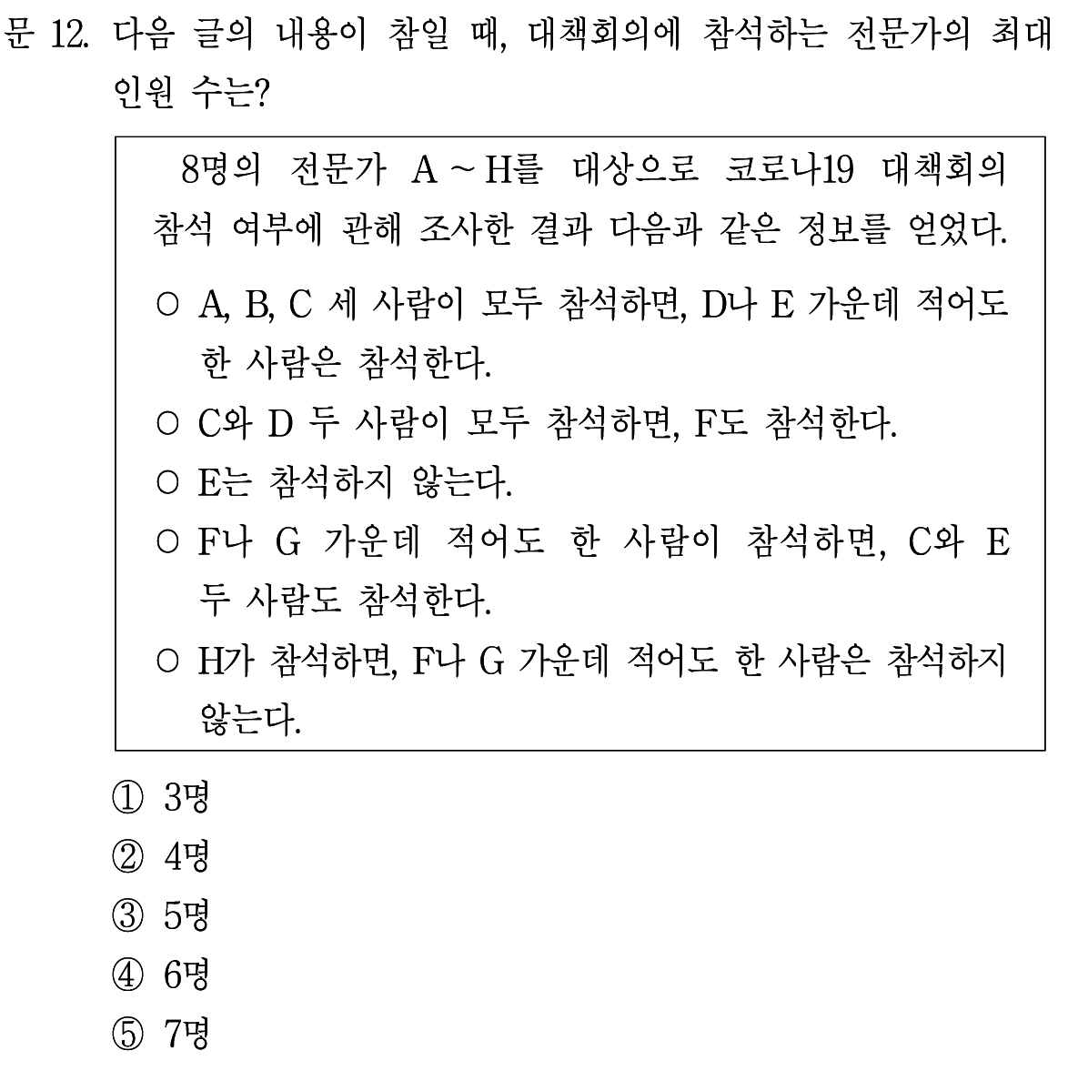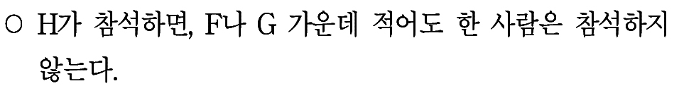 'F와 G 모두 참석하면 H는 참석하지 않는다'가 된다.