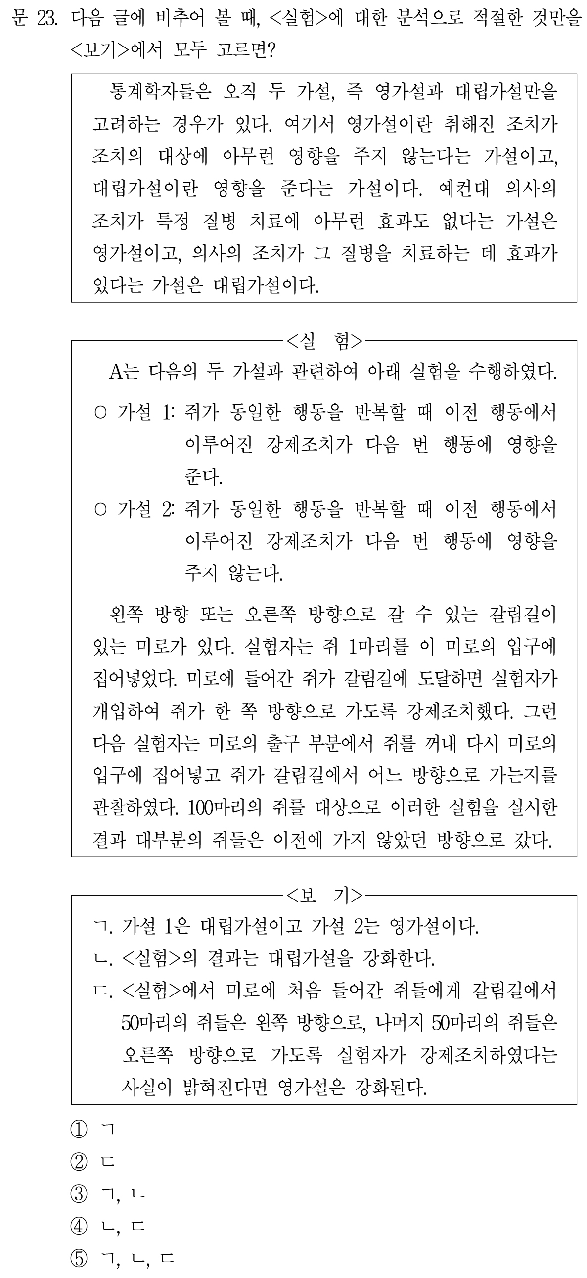 ㄴ.<실험>의 결과는 대립가설을 강화한다.