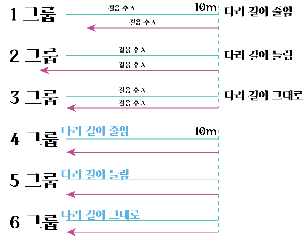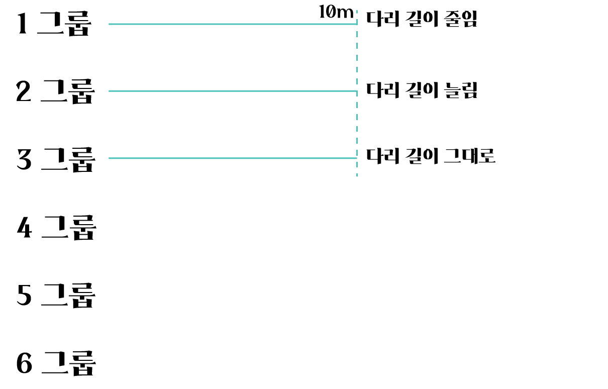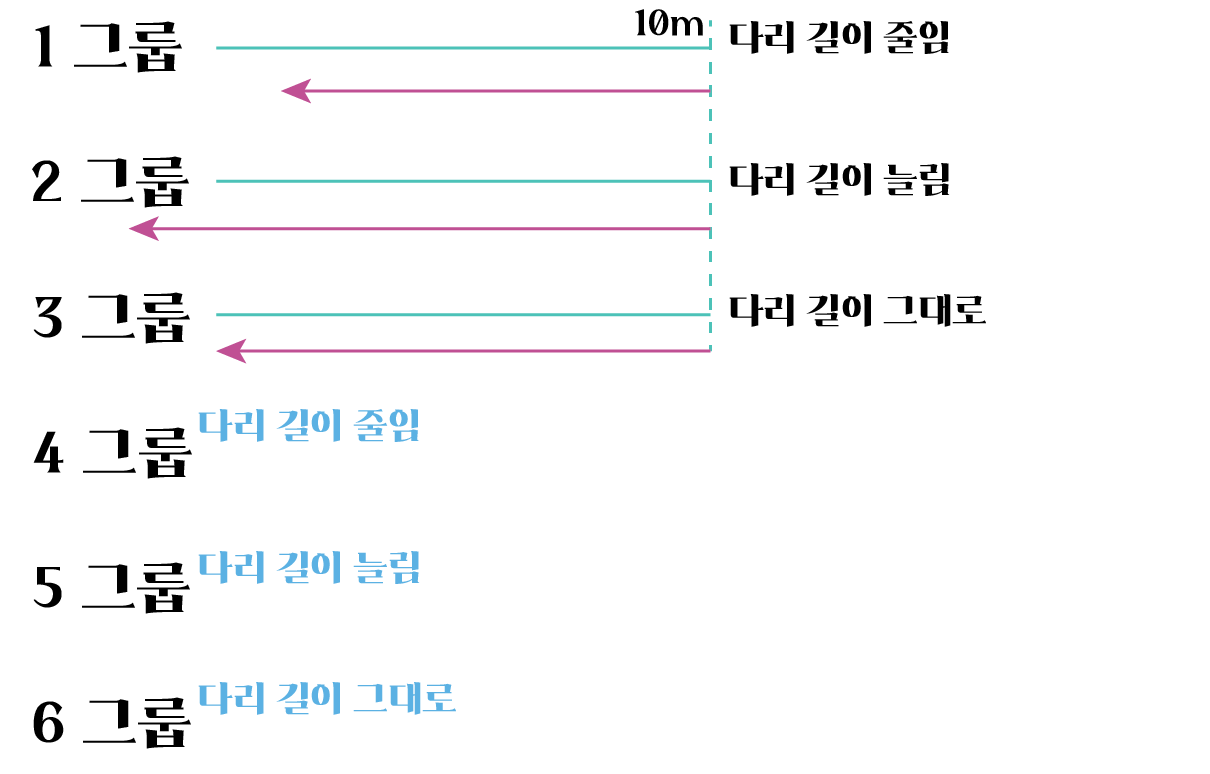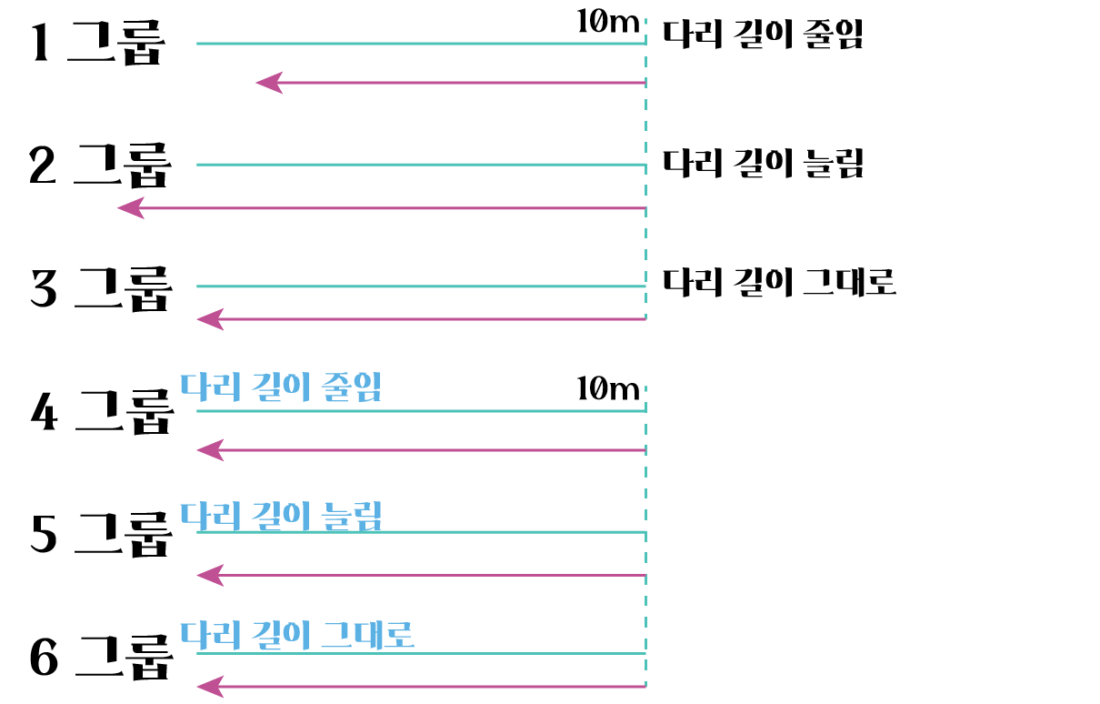 1-3 그룹을 보면 맞는 듯 싶지만, 4-6 그룹을 보면 다리 길이가 각각 다름에도 이동 거리가 동일한 것으로 봤을 때,