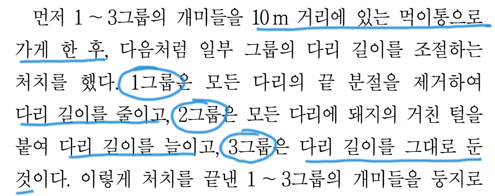 1번. 개미의 이동 거리는 다리 길이에 비례한다.