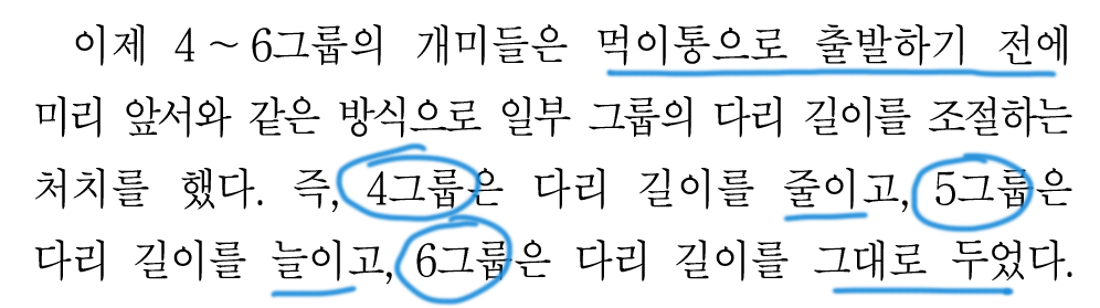 4번. 개미는 다리 길이가 조절되고 나면 이동 거리를 측정하지 못한다.