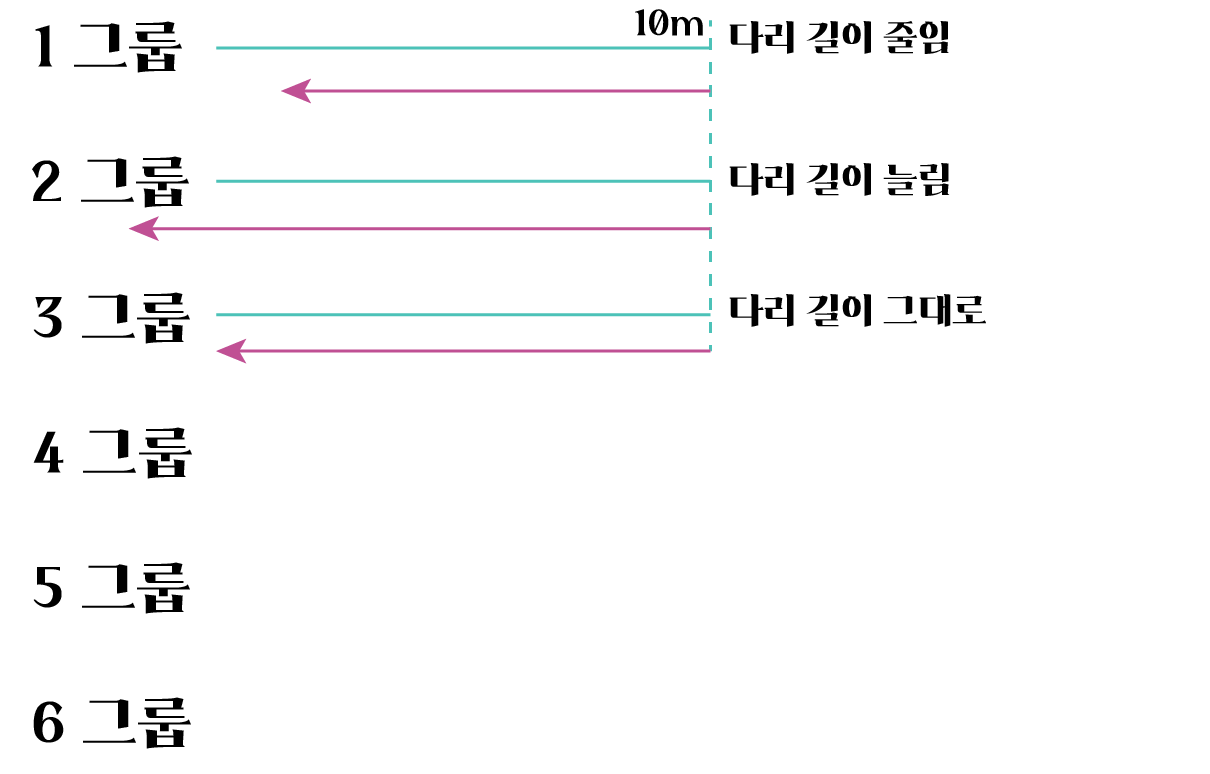 1-3 그룹을 보면 맞는 듯 싶지만, 4-6 그룹을 보면 다리 길이가 각각 다름에도 이동 거리가 동일한 것으로 봤을 때,