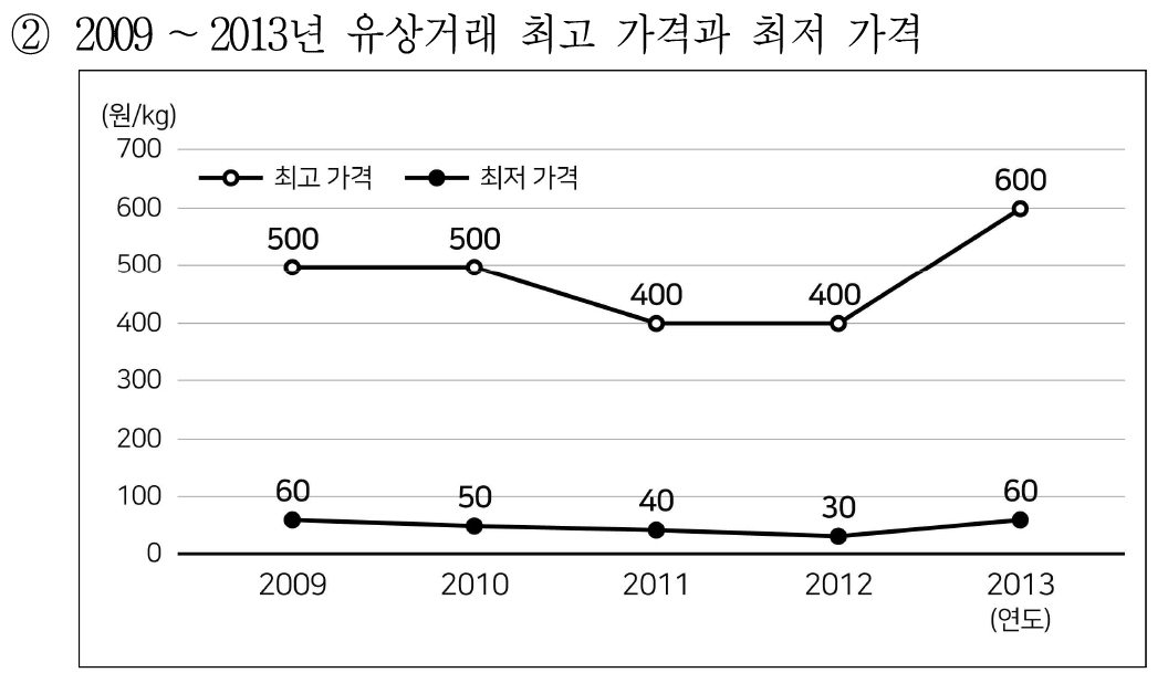 2011년도 최저 가격이 10원인데, 40원으로 되어 있다. 그래서 틀렸다.