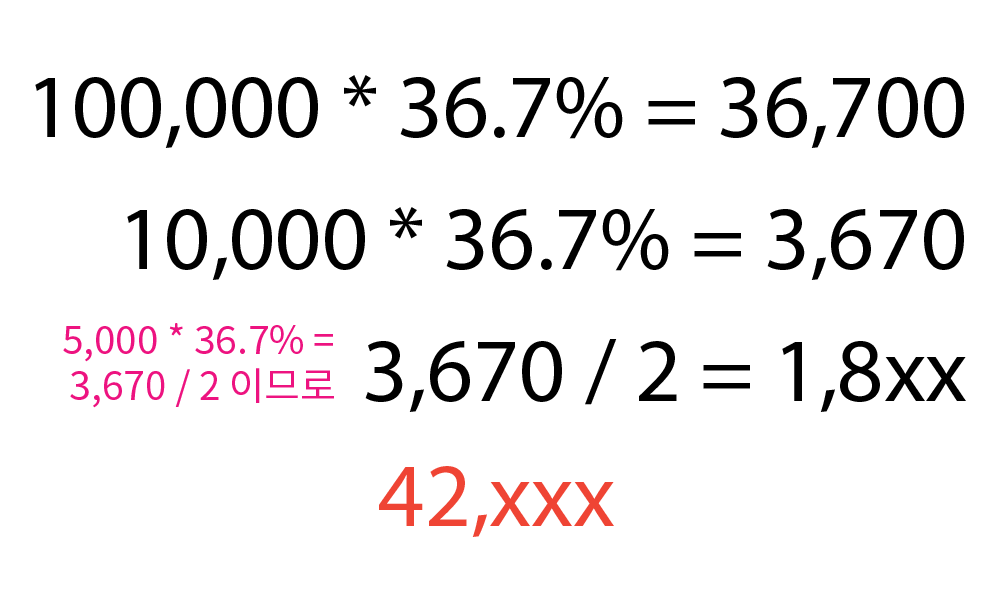 결과를 보니 42,xxx가 나왔는데, 이는 42,500에 근접한다.