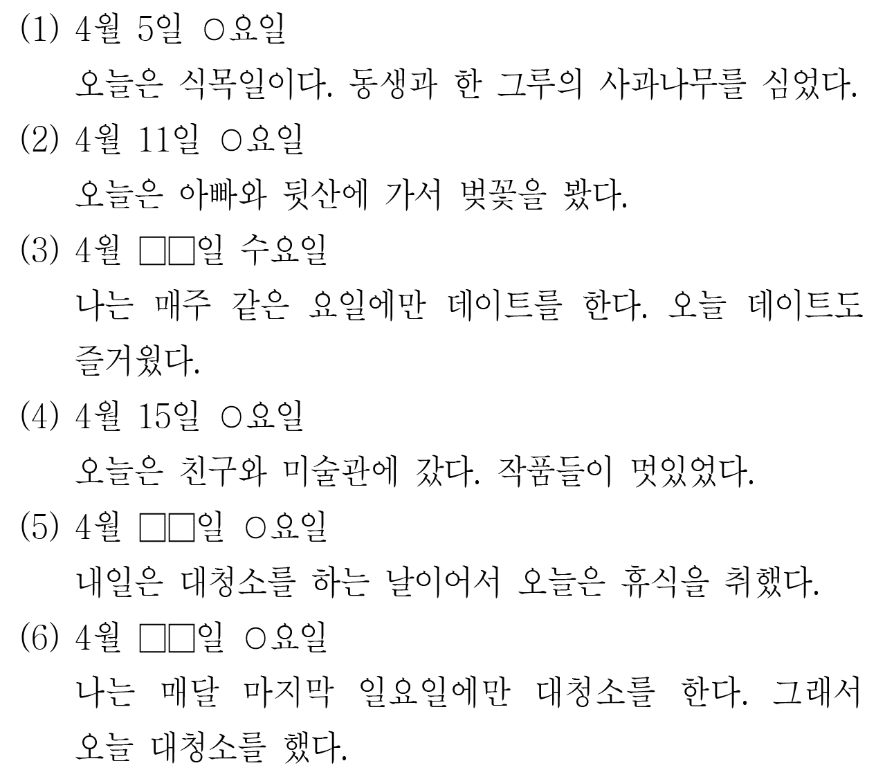 근데 수요일이 나와 있으므로 수요일을 제외하고 5개의 요일 중 하나라는 것을 알 수 있다.