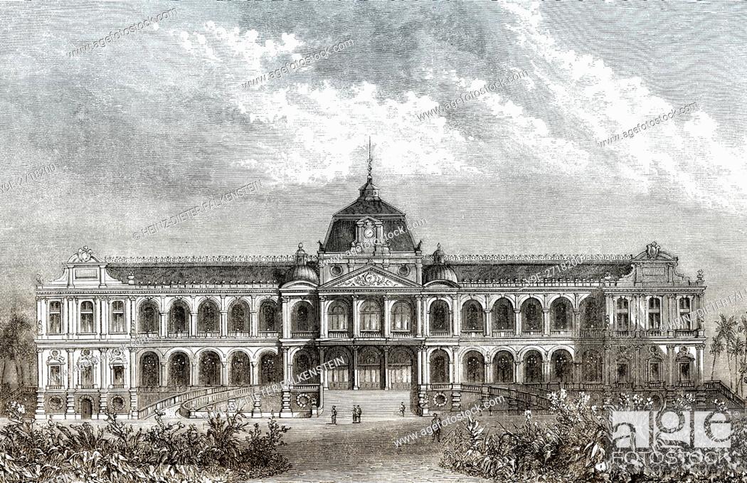 다음은 베트남 호치민시에 소재한 통일궁의 자리에 있었던 노르돔 궁전을 일러스트레이터로 그린 것이다.