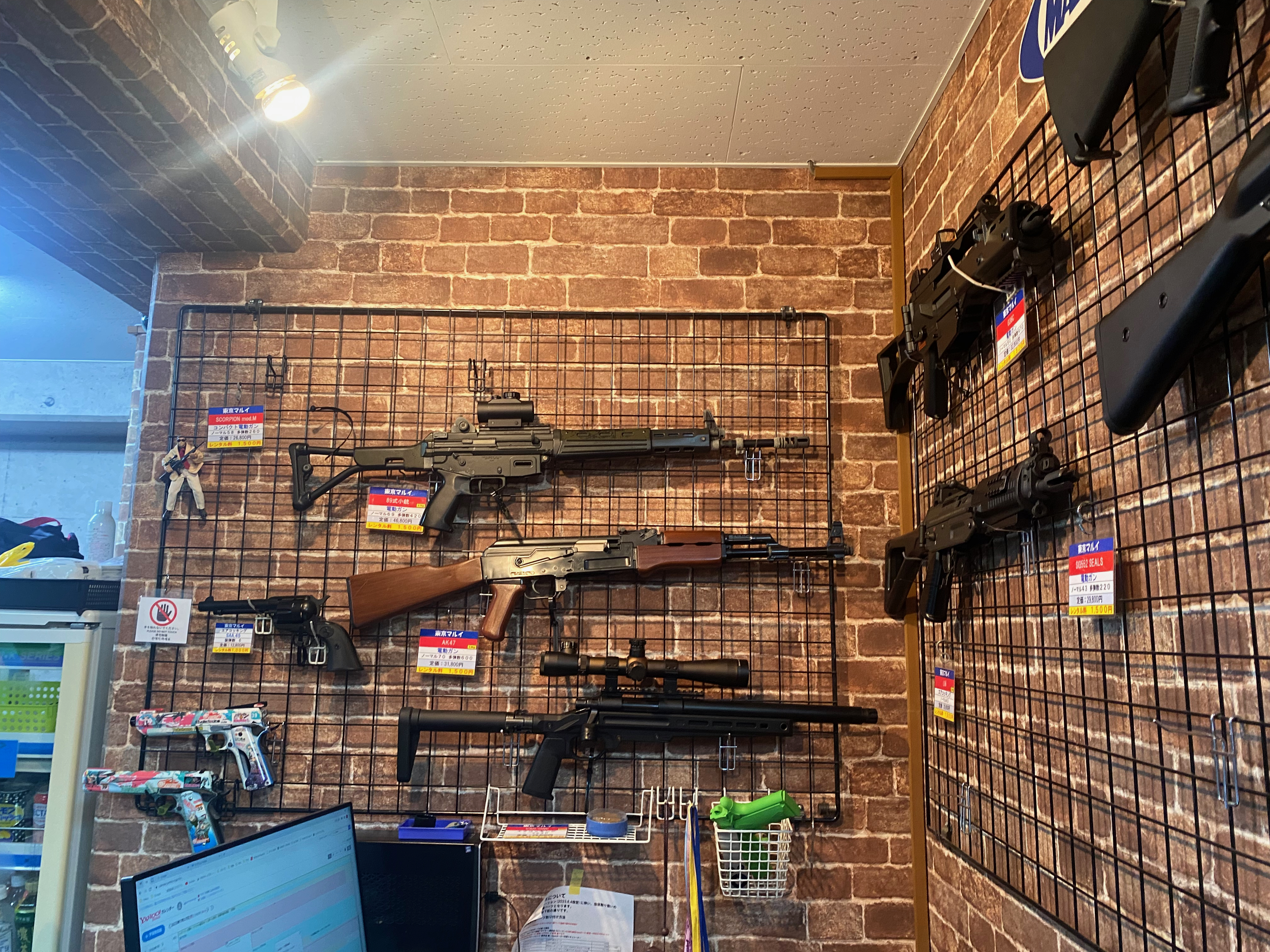 포스터를 보아하니 BB탄 총도 판매하는 것 같았다. 그런데 판매하는 총이 전시되어 있지는 않았던 것 같은데, 어디 창고에 총을 보관하고 있거나 도쿄 마루이의 협찬을 받아서 포스터를 붙여 놓은 것 같다.