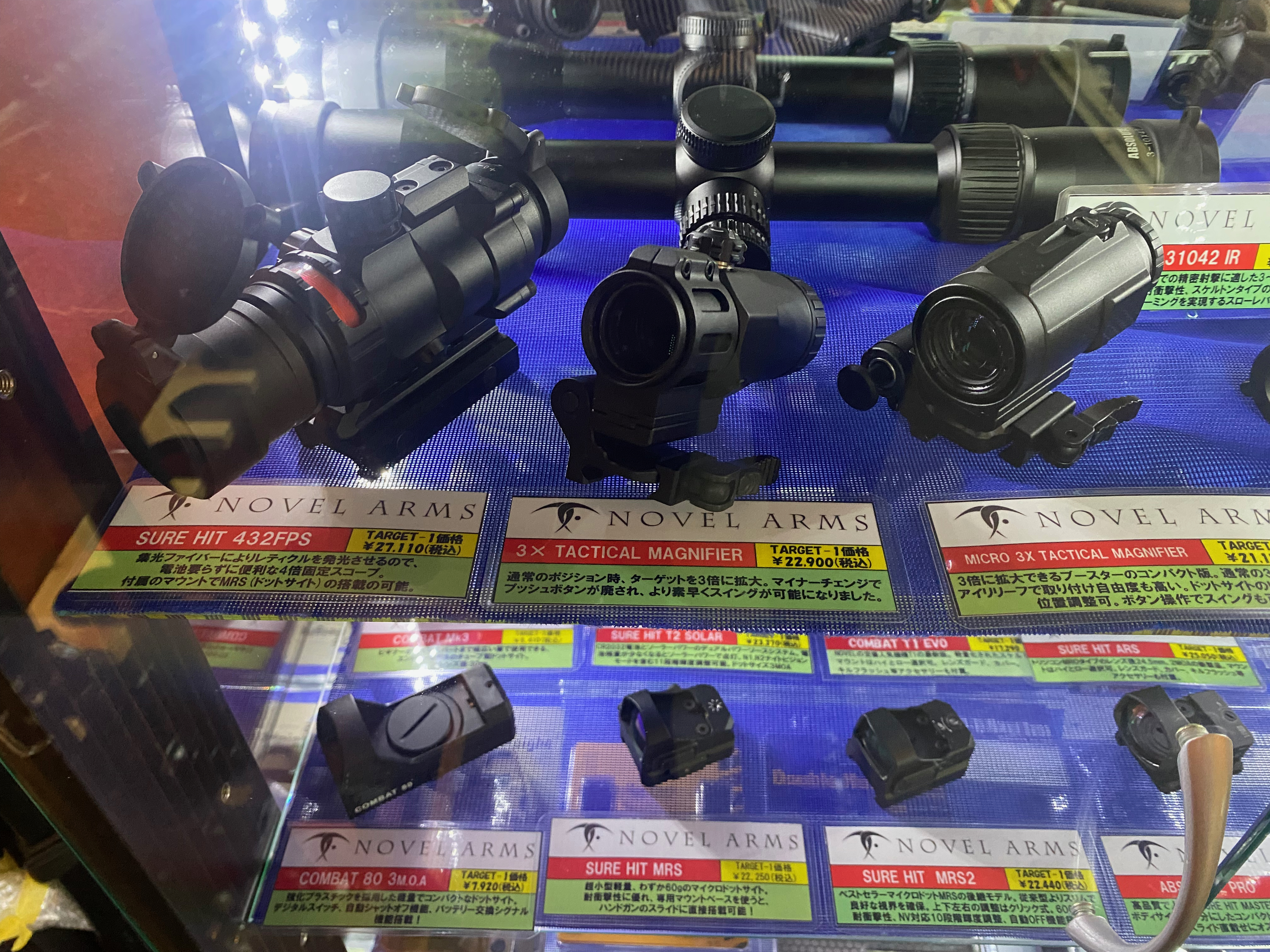 조준경도 판매를 하고 있었다. 노벨 암스라고 하는데, 처음들어 보는 곳이라 찾아보니 일본산 자체제작 조준경인 듯하다. 가격이 20만원 정도로 저렴하다보니 실총용은 당연히 아닌 것 같고 BB탄총용일 것으로 생각된다. 하긴 BB탄 총이다보니 여기서 EO tech나 Vortex 조준경까지 필요할 리는 만무하다.