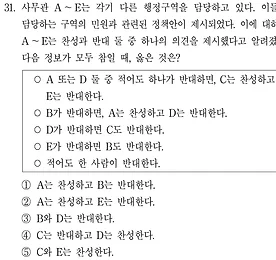 피셋 썸네일형 리스트형 2013년 5급 공채 PSAT 상황판단(인책형) 2번 오답 풀이 무슨 2번부터 이렇게 어려워보통 1페이지 문제는 다 풀고 넘어가는데, 이거는 좀 넘길 필요가 있는 문제인 것 같다.딱 봐도 날짜 계산이 동반되는 문제이기 때문이다. 근데, 날짜 계산 관련해서 의미 있는 문제인 것 같다.지문을 다 읽어야 하는 문제상황판단에서는 선택지를 보고 '발췌독'이라고 알려진 읽기 기술을 활용하는데, 이 문제에서는 일단 절기에 대해 이해를 해야 하기 때문에 일단은 글을 읽어야 하는 문제다. 24절기가 12개의 절기와 12개의 중기로 나눠지는 것을 알 수 있다.각 달마다 절기가 먼저고 중기가 나중이다. 그리고 절기와 중기를 나누는 방법은황경이 15도 간격으로 증가할 때마다 절기와 중기가 바뛴다고 하고, 춘분은 황경이 0도일 때라고 한다. 그러니까 예를 들어, 소한이었을 때 황경이 15.. 더보기 2013년 5급 공채 PSAT 언어논리(인책형) 39, 40번 오답 풀이 지문 이해하기A -> B 인 것이 입증되었을 때 A -> B인 것을 입증시키는 사례가 A -> B인 것을 함축하는 명제와 어떤 관계를 가지는지에 대한 의문을 던지고 있다. 예를 들어, 2012년 5급 언어논리 19번에서 나왔던 것처럼,2025.01.22 - [PSAT/언어논리] - 2012년 5급 공채 PSAT 언어논리(인책형) 19번 오답 풀이 2012년 5급 공채 PSAT 언어논리(인책형) 19번 오답 풀이지문 이해하기진리 정합론에서 참인 명제에 대한 정의는 대다수의 사람이 참이라고 믿는 명제와 정합적인 명제라고 한다. 근데, 정합적인 것이 뭔데?진리 정합론자 X는 정합적이라는 것을 논ltp12074.com(나) '서울은 대한민국의 유일한 수도이다' 이 명제는 (라) '부산은 대한민국의 수도가 .. 더보기 2013년 5급 공채 PSAT 언어논리(인책형) 37번 오답 풀이 지문 이해하기알파 케로틴 분자가 나선 구조를 가지고 있다고 밝혀 냈다고 한다. 그리고DNA가 알파 케로틴과 화학적 특성이 유사하기 때문에 나선 구조일 것이라고 보고 있다고 한다. DNA 분자가 나선 구조일 것이라는 가정 하에서나선 가닥의 수는 둘 또는 셋이라고 한다.(이중이냐 삼중이냐) 그리고 염기 배열 위치도 두 가지인데,1. 중추가 안쪽에, 그리고 염기가 바깥쪽2. 염기들이 중추 안쪽DNA가 이중나선이나 삼중나선일 수 있고염기 배열 위치도 두 가지인 상황에서 DNA로 가능한 구조는 4가지라고 한다. -염기 안쪽 이중나선-염기 바깥쪽 이중나선-염기 안쪽 삼중나선-염기 바깥쪽 삼중나선 근데, 염기가 바깥에 있는 삼중나선 구조는 제외시켰다.DNA는 많은 수의 물 분자와 결합하는데, 삼중나선은 물 분자와.. 더보기 2013년 5급 공채 PSAT 언어논리(인책형) 32번 오답 풀이 어떻게 분류해야 할지 고민이 되는 문제윤리학자도 있고, 경영학자도 있다.근데, 윤리학자에는 신진과 중견도 있고, 경영학자의 경우에도 마찬가지다. 그래서 이걸 어떻게 분류할 수 있는지 고민이 되었던 문제다. 근데, 다 제쳐 놓고, 윤리학자는 2명 밖에 없다. 그래서 중견 윤리학자 1명신진 윤리학자 1명중견 및 신진 윤리학자 2명이 선정되는 경우로만 나누면 그만이다. 윤리학자로 경우 나누기윤리학자로는 중견 윤리학자 1명, 신진 윤리학자 1명으로 총 2명 밖에 없다. 그리고 이 중에서 1명 이상이 선정되어야 하니까 경우는 3가지 밖에 없다. 그리고 신진 윤리학자의 경우이 조건이 붙으므로여기서부터 시작해 볼 수 있다. 5명의 위원을 뽑는데,이 두 조건이 있다. 그렇다면 중견 윤리학자 1명이 있는 경우에는신.. 더보기 2013년 5급 공채 PSAT 언어논리(인책형) 31번 오답 풀이 고정된 걸 찾기 상당히 어려운 문제뭔가 고정된 것을 찾고 시작하는 게 국룰인데, 여기서는 고정된 걸 찾기가 상당히 어렵다. 그래서 가정을 하고 풀어야 하는 문제다. 가정을 하다 보면 뭔가 조건끼리 모순되는 상황이 발생하고, 이에 따라 고정된 것을 찾을 수 있는 구조다. 일단 이런 경우를 생각해 볼 수 있다. 그리고 이 말을 뒤집어 보면'A가 반대하거나 D가 찬성하면 B는 찬성한다'가 된다. 그래서A 또는 D 둘 중 적어도 하나가 반대할 경우 위와 같이 됨을 알 수 있다. 근데, 이거는 'A 또는 D 둘 중 적어도 하나가 반대할 경우'이다. 으잉? 근데 D가 반대하면 C도 반대한다고 한다. 그렇다면위와 같이 A가 반대하는 경우만 생각해 볼 수 있다. 아니 근데, 이러면이렇게 된다. 따라서 A 또는 D.. 더보기 2013년 5급 공채 PSAT 언어논리(인책형) 12번 오답 풀이 모순되는 주장을 찾아야 하는 문제'이 중 넷은 옳았지만 하나는 틀렸다'에서 '아 경우가 너무 많아지는데?' 라고 생각해서 넘어간 문제다. 근데, 뭐 3명도 아니고 5명 중에서 누가 틀렸을지 경우를 구분해 보라는 것은 PSAT스럽지 않다. 서로 모순되는 주장을 하는 사람들을 찾으라고 하는 것이라고 받아들여야 한다. 그래서 보면 병과 정이 서로 모순된 주장을 하고 있는 것을 볼 수 있다. 갑하고 을은 '~거나(or)'라고 하는 데 반해 병부터 무까지는 '~고(and)'라고 하고 있기 때문이다. 일단 병과 정 중에서 누가 옳은지는 모르겠지만 나머지 사람들 말은 다 맞는 말이 된다. 그래서일단 이런 모양새가 된다. 그리고 정이 확산으로 가는 만큼, 을이 주장한 대로 무는 수용으로 간다. 그래서병이 한 ..